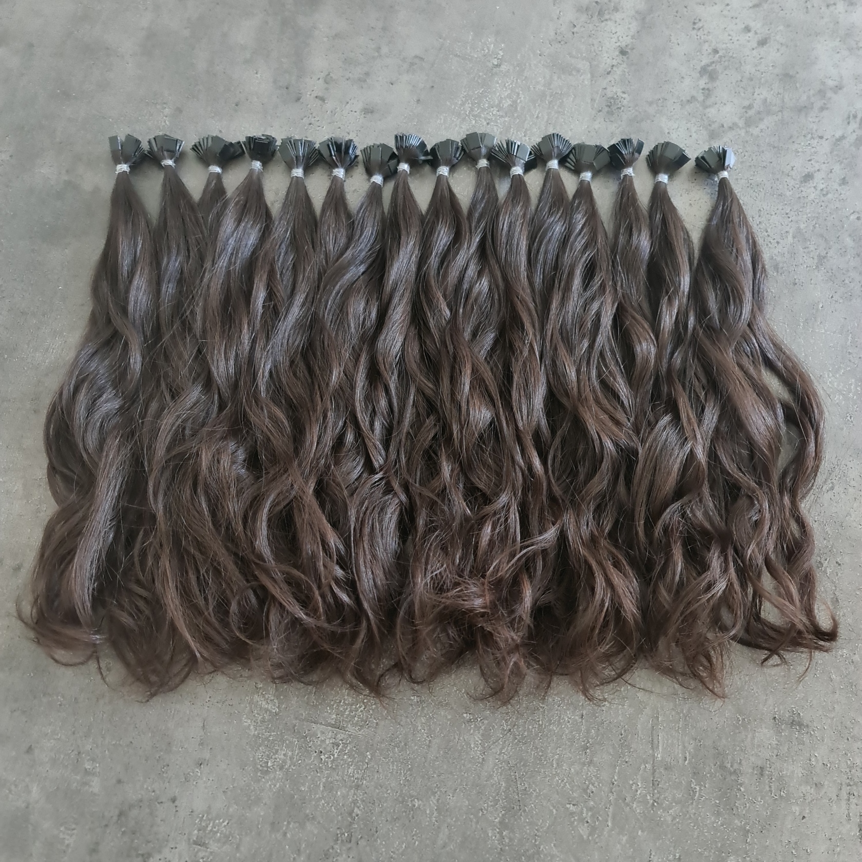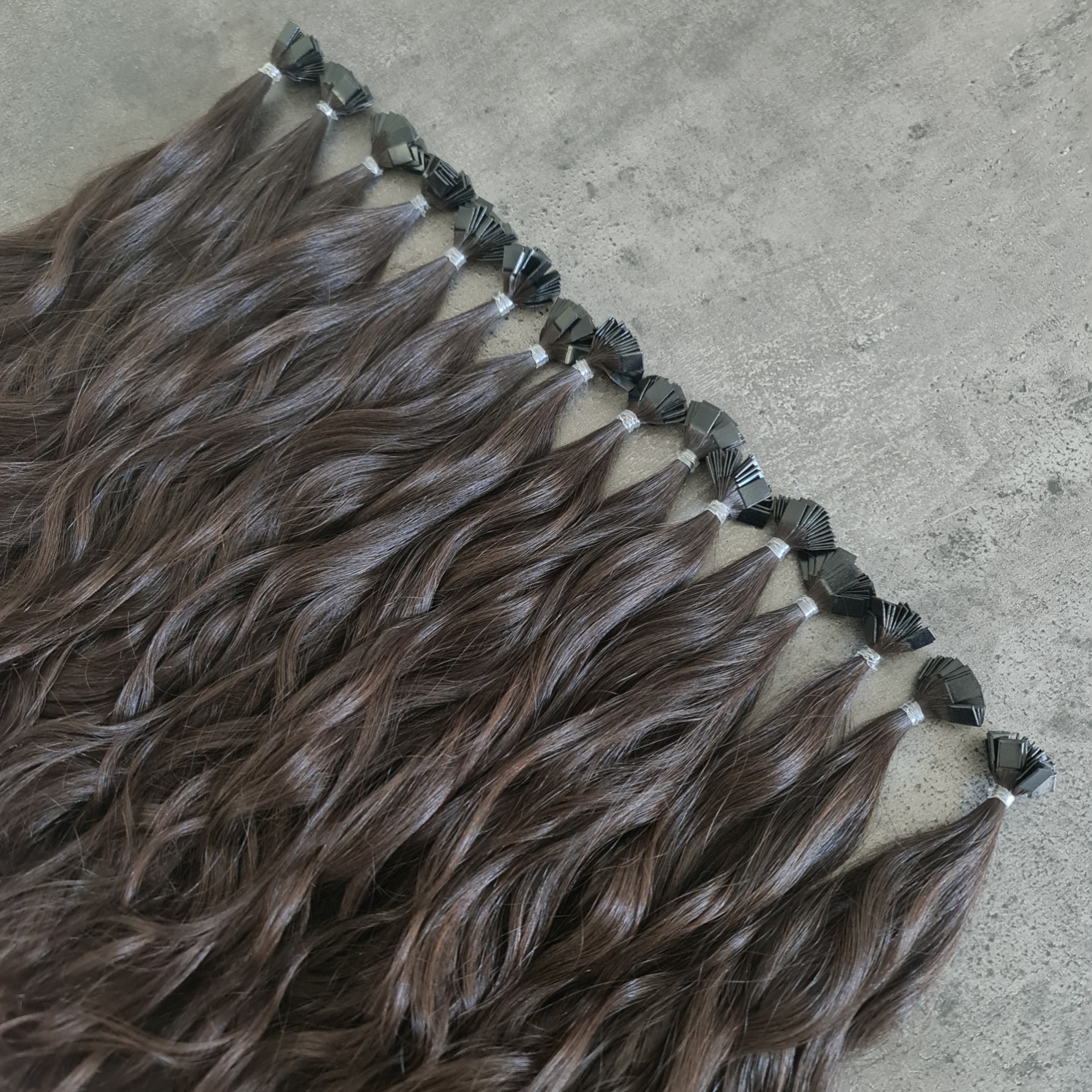 Diese Echthaar-Bondings sind 35–40 cm lang und besitzen eine natürlich gewellte Struktur mit Natural Ends für einen sanften, harmonischen Abschluss. Der Farbton N3 – Naturdunkelbraun ist ungefärbt und naturbelassen – ein tiefes, sattes Dunkelbraun mit elegantem, natürlichem Glanz.
