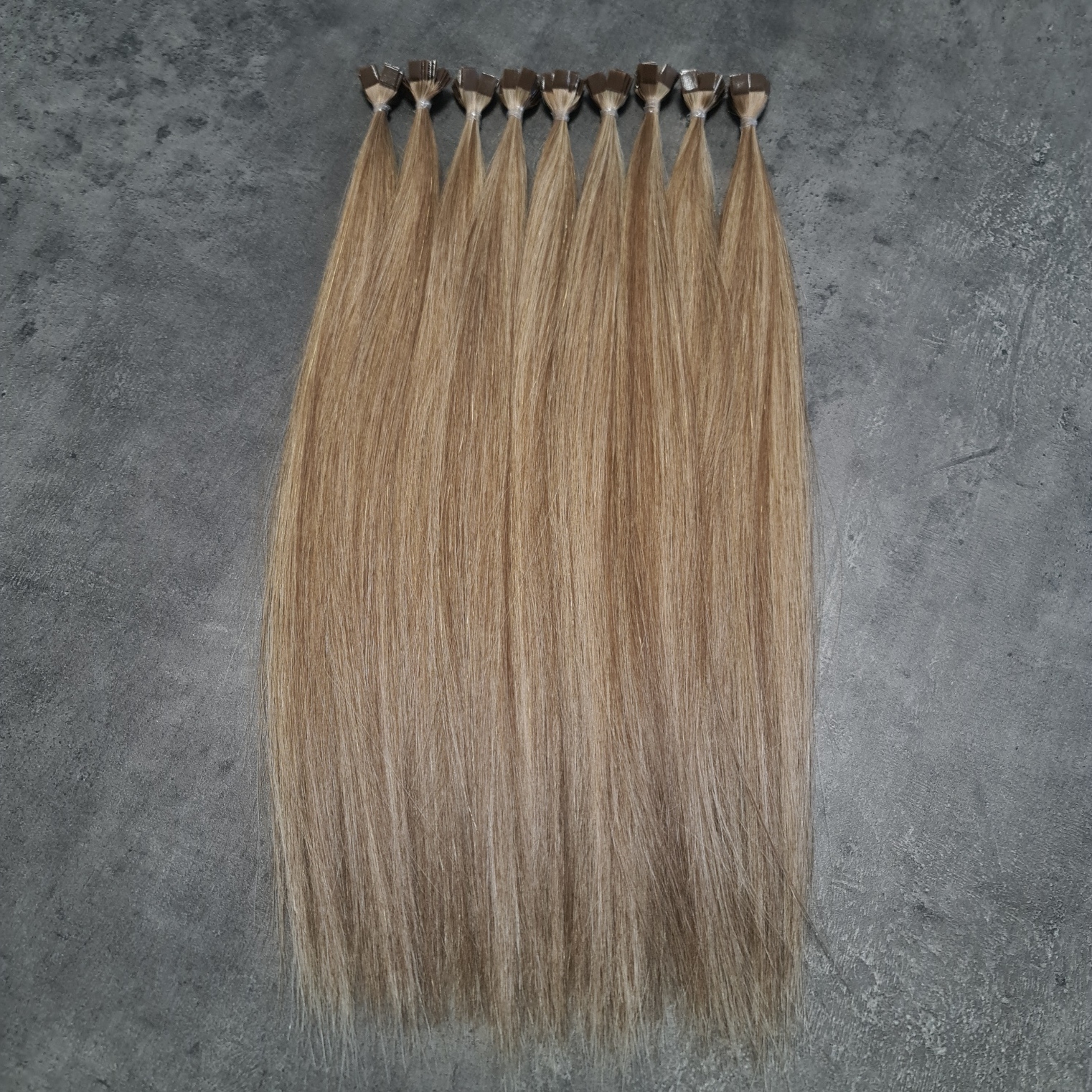 - Befestigung: Keratin-Bondings (braun)