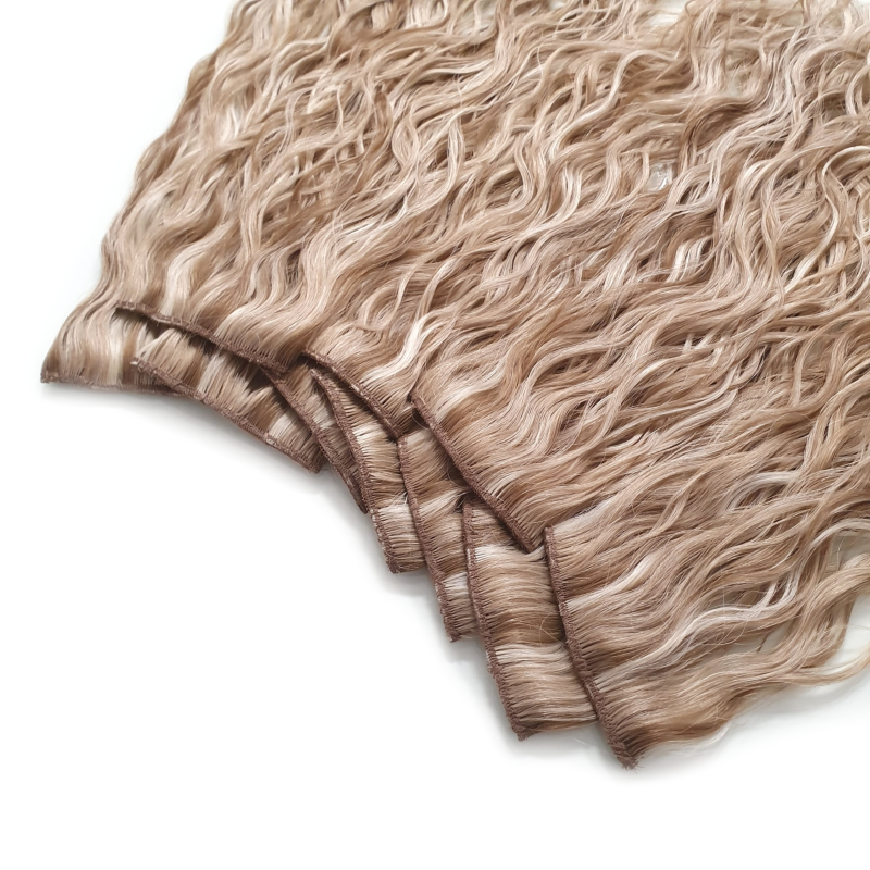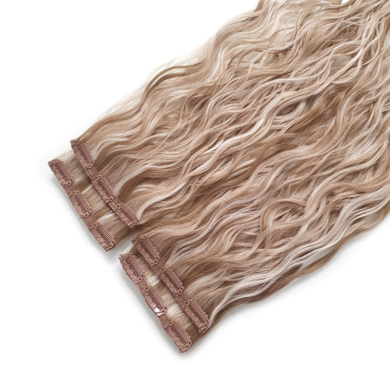 Die Clip In Tressen sind in ein- oder doppellagiger Ausführung bestellbar. Wählen Sie ein doppellagiges Haarteil vernähen wir die doppelte Haarmenge mittels Tüll auf ein Tressenstück.