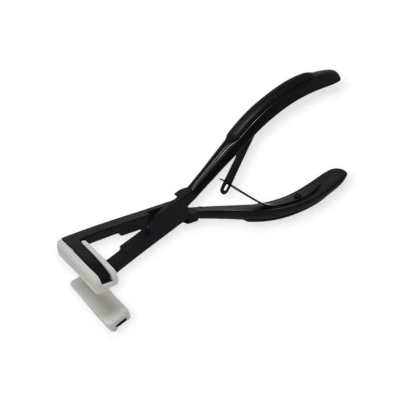Hochwertige Tape Zange aus Edelstahl. Ideal für eine schnelle und haltbare Einarbeitung der Tape EXtensions. Die Tapes werden am Eigenhaar appliziert und abschließend mit der Tape Zange fest verschlossen.