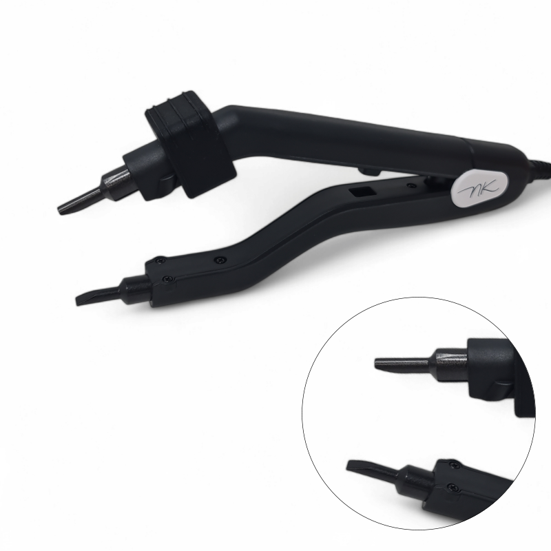 Der neue Thermo Connector "Slim Bond" wurde speziell für die Einarbeitung von feinen, leichten Strähnen entwickelt, um eine optimale Verblendung der Extensions mit dem Eigenhaar zu erzielen. Die kleinen Applikationsspitzen ermöglichen es nun, extra kleine und für Außenstehende nahezu unsichtbare Verbindungen zu kreieren.