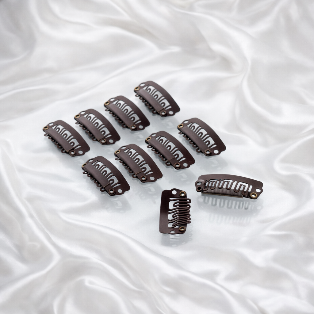 Unsere Toupee Clips werden zur professionellen Befestigung von Clip In Haarteilen, Tressen und anderen Haarverlängerungssystemen verwendet. Die Clips sind ca. 2,8 cm groß, robust verarbeitet und mit einem integrierten Silikonstreifen ausgestattet, der für optimalen Halt und gleichzeitig schonendes Tragen sorgt. Sie verhindern ein Verrutschen und bieten sicheren Komfort auch bei feinem Eigenhaar.